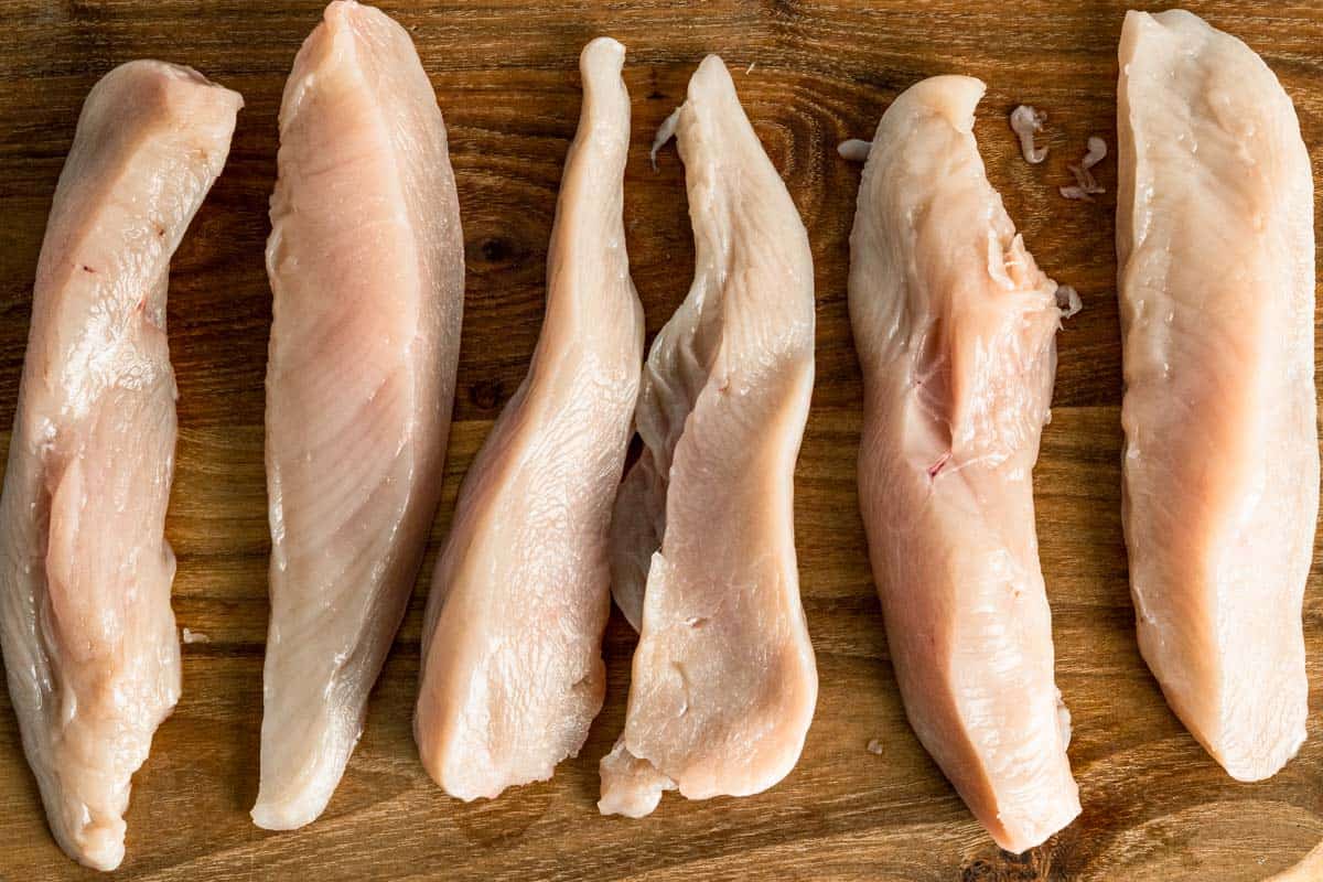- Chicken tenderloins work great as a shortcut (no slicing needed).