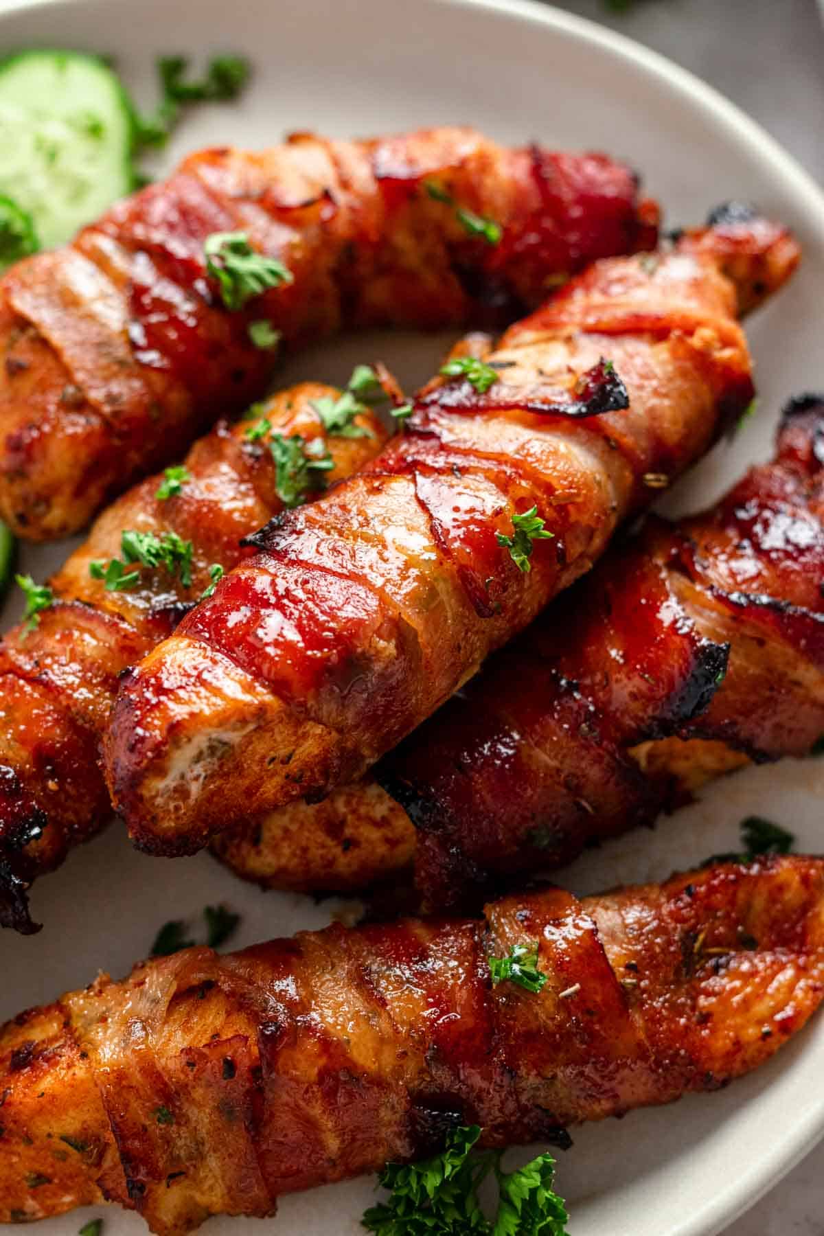 - Grill method: Preheat the grill to medium heat. Grill tenders for about 6–8 minutes per side or until bacon is crispy and chicken is fully cooked.