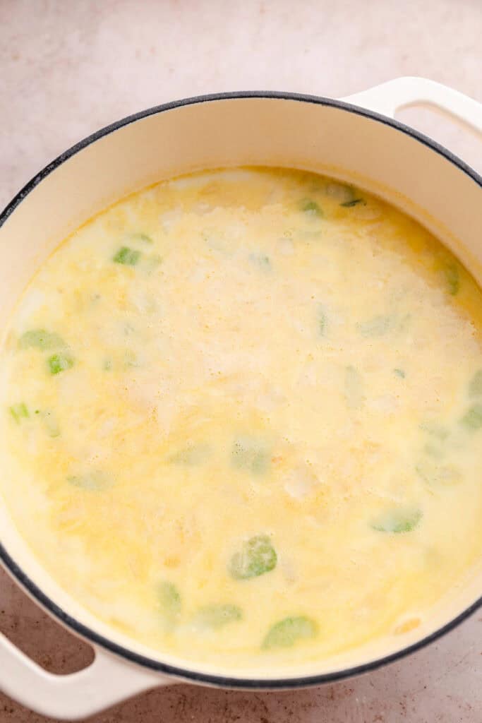 - Adding the flour before the broth helps the soup thicken nicely without clumps.