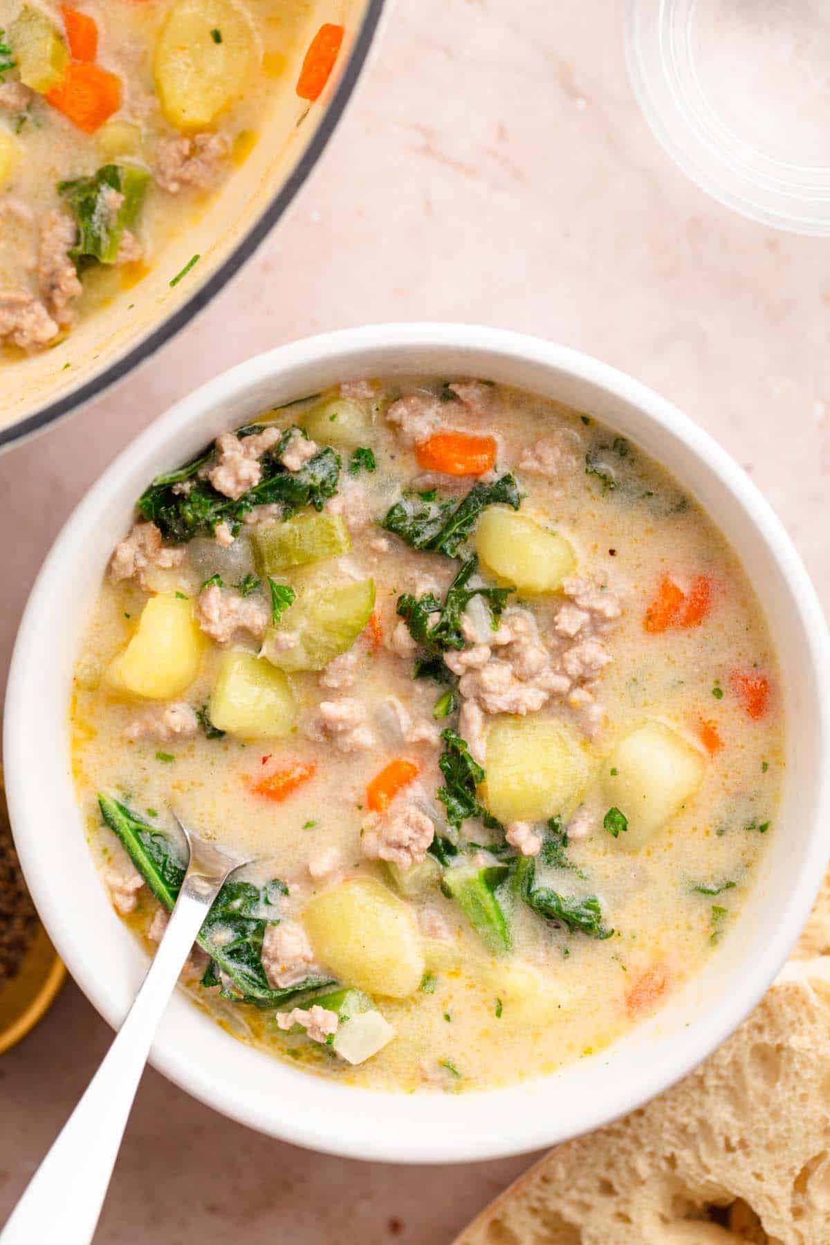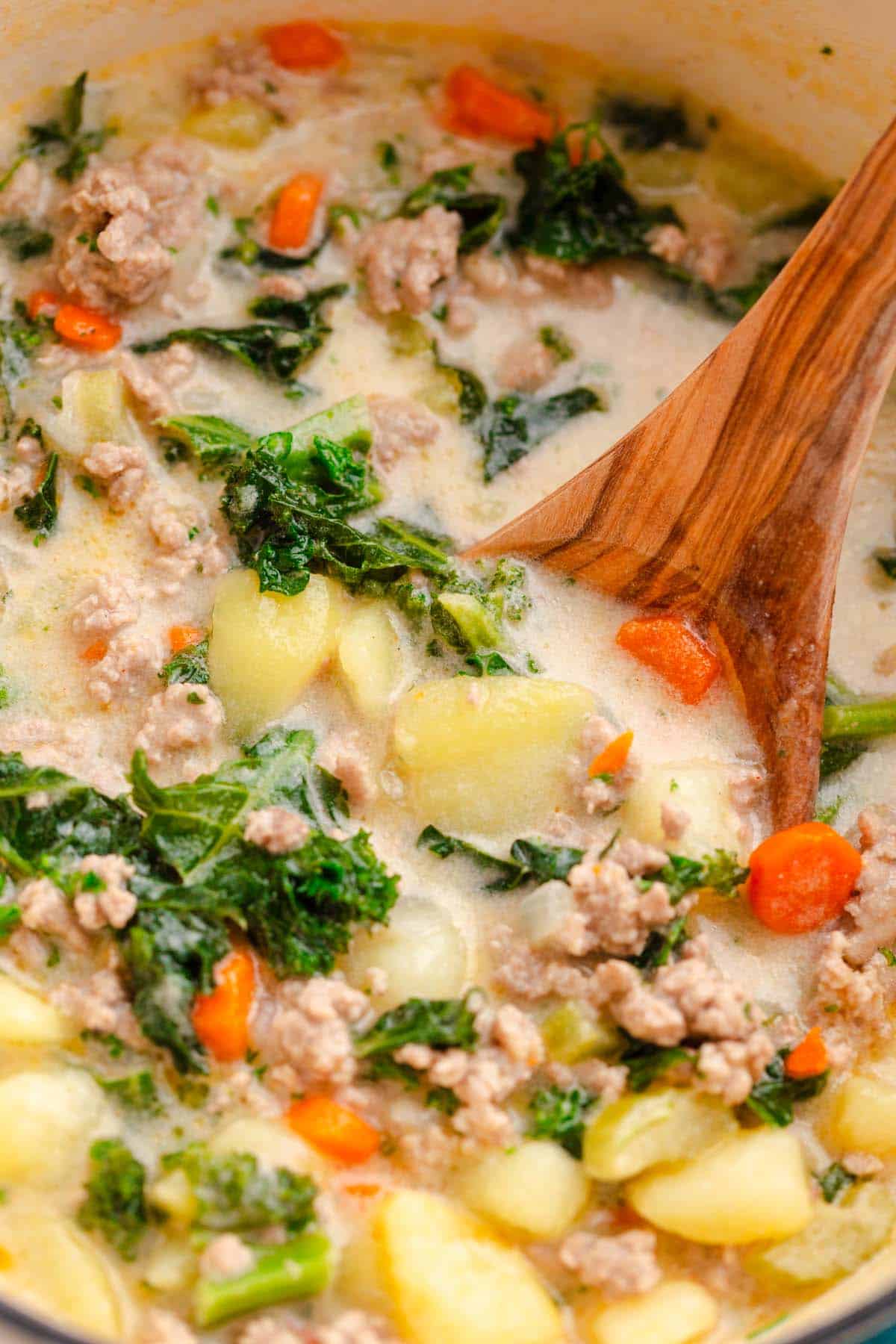 Cozy, delicious, and easy, this creamy ground turkey soup with potatoes and kale is a healthy family favorite perfect for busy weeknights.