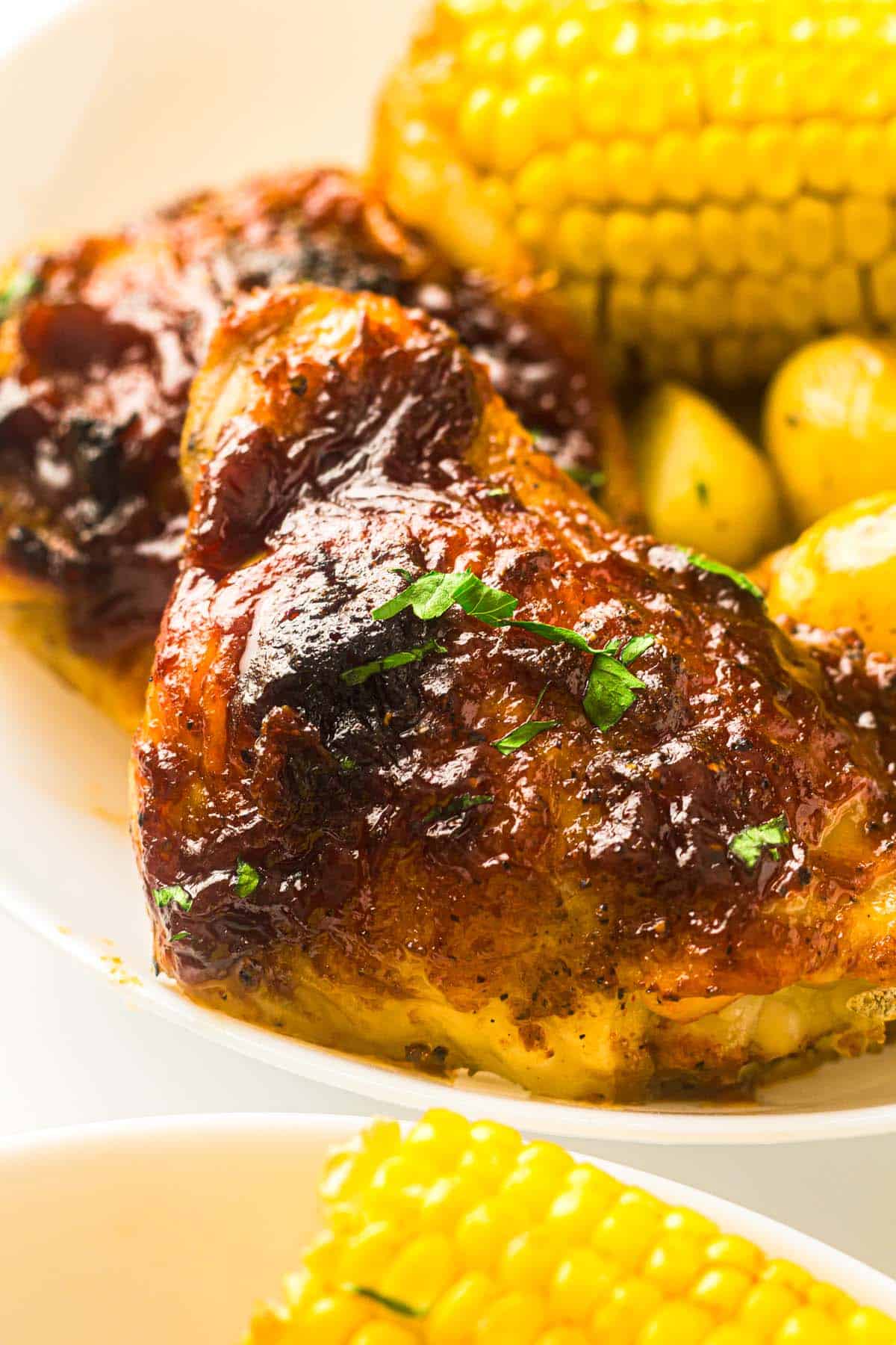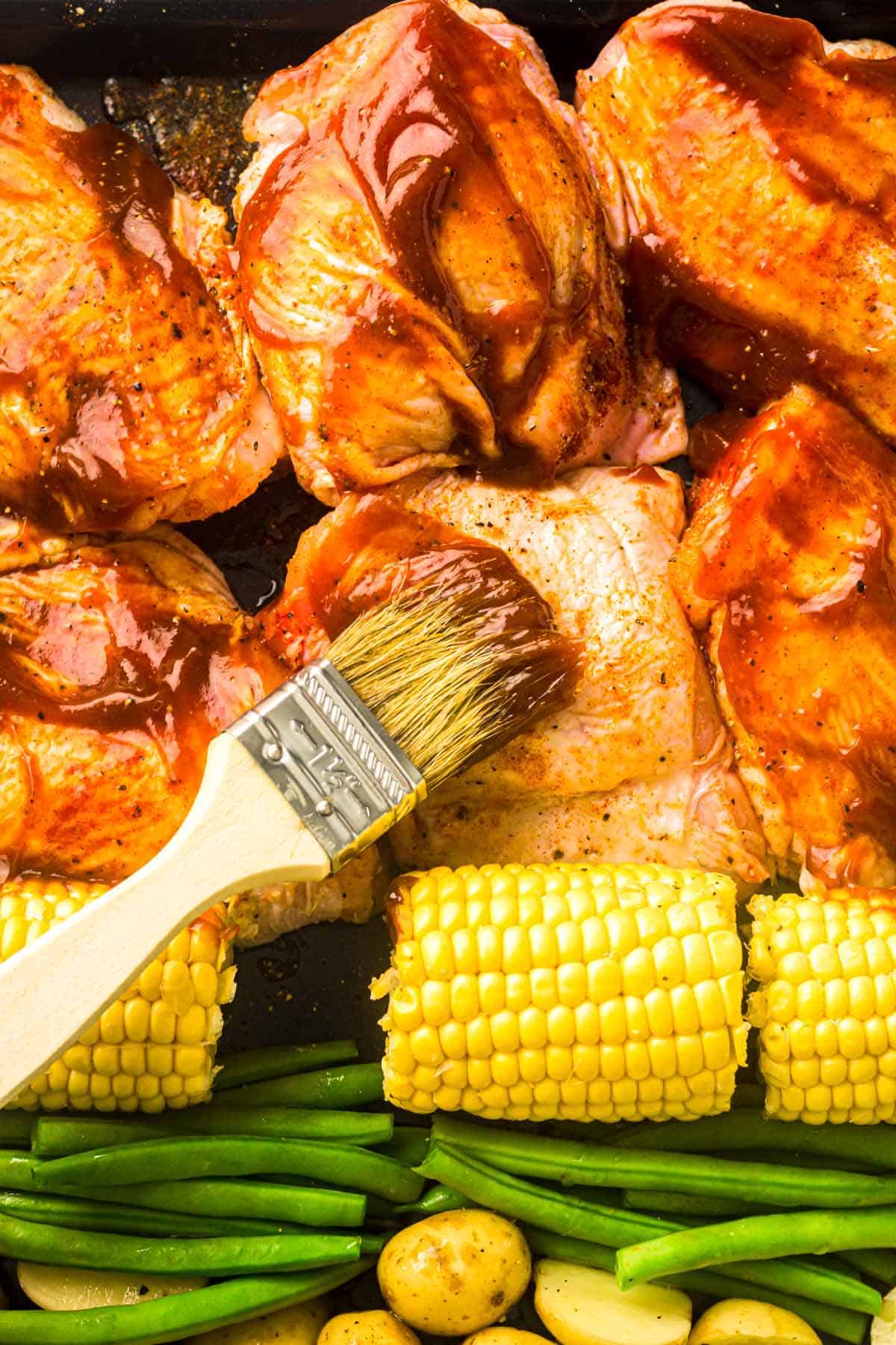 Roasted Chicken Thighs and Vegetables (with BBQ Sauce!)