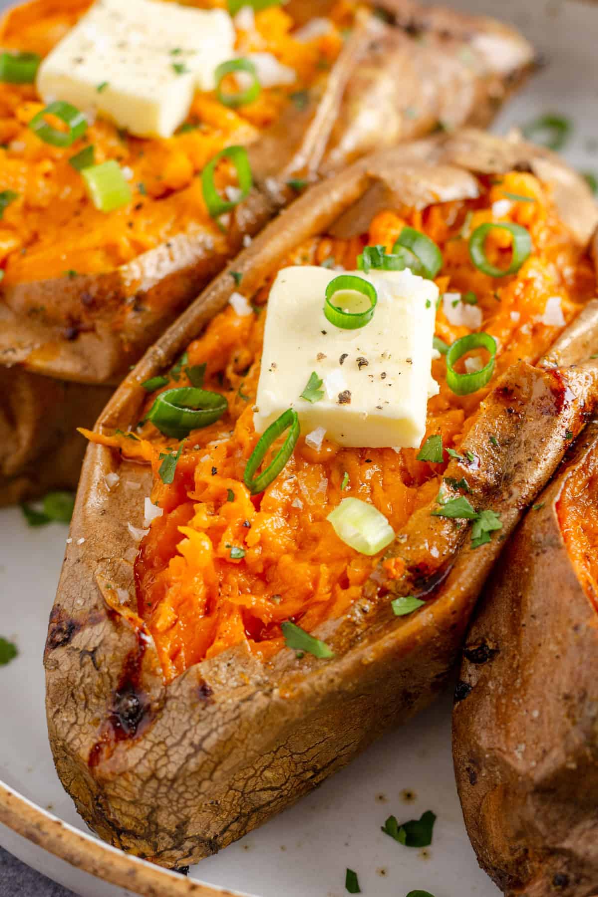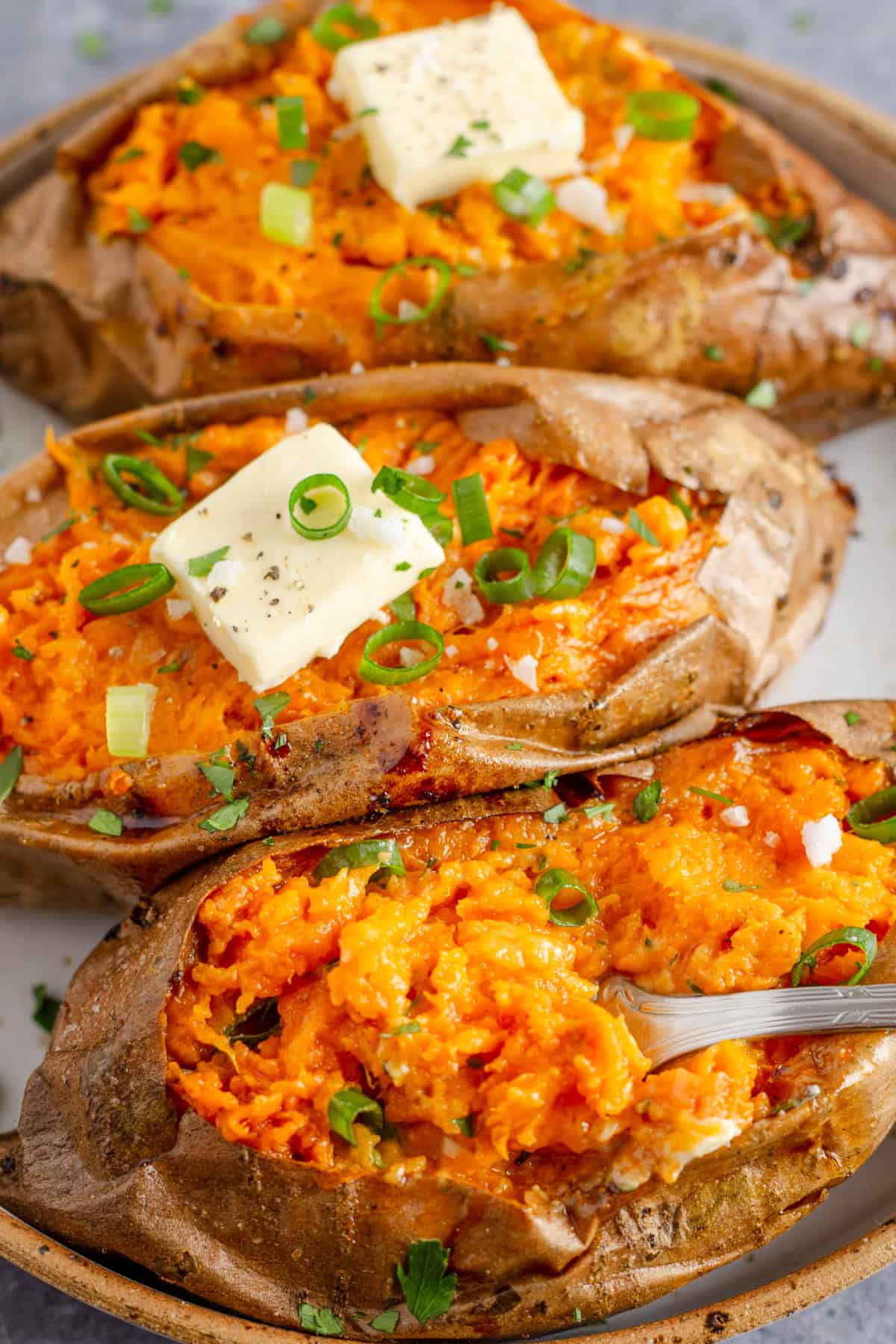 There’s something so comforting about a perfectly roasted sweet potato. It’s soft and fluffy inside with a little crisp on the outside. I like to serve it with a sprinkle of sea salt and a butter, or sometimes with a spoonful of Greek yogurt and herbs for a quick healthy side that goes with almost anything.