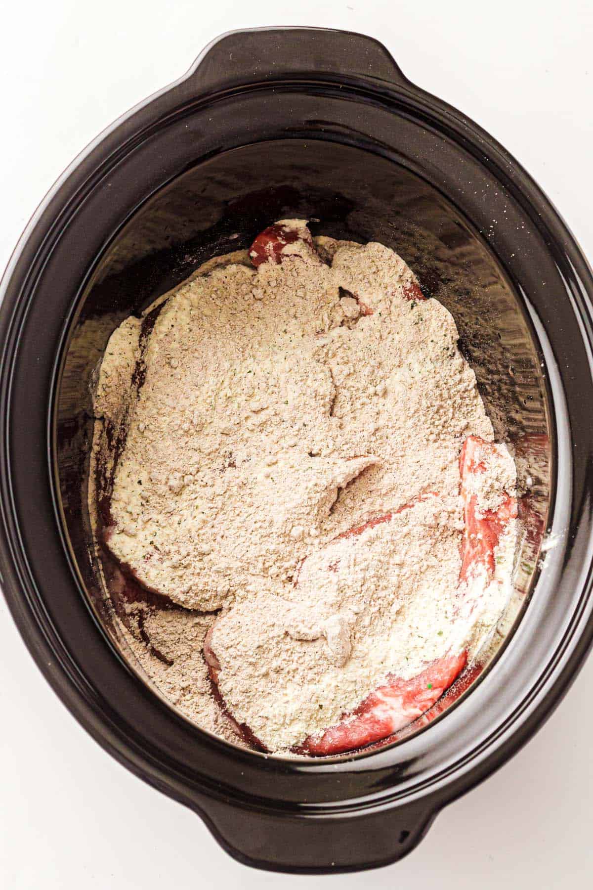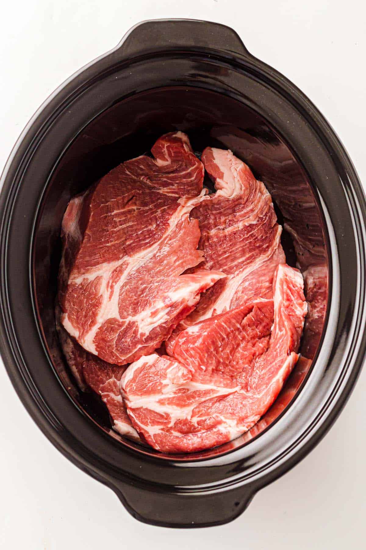 - No need to sear the pork first, the slow cooker does all the work.